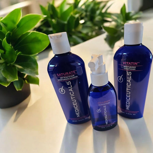 Cellagen:Â Water (Aqua), Propylene Glycol, Polysorbate 80, Maltodextrin, Panthenol, Methyl Nicotinate, Cimicifuga Racemosa Root Extract, Arctium Lappa Root Extract, Angelica Polymorpha Sinensis Root Extract, Zingiber Officinale (Ginger) Root Extract, Panax Ginseng Root Extract, Hydratis Canadensis (Goldenseal) Root Extract, Humulus Lupulus (Hops) Extract, Glycyrrhiza Glabra (Licorice) Root Extract, Trifolium Pratense (Clover) Extract, Rosemarinus Officinalis (Rosemary) Leaf Extract, Salvia Officinalis (Sage) Leaf Extract, Serenoa Serrulata Fruit Extract, Laminaria Digitata Extract, Glycine Soja (Soybean) Germ Extract, Dioscorea Villosa (Wild Yam) Root Extract, Albumen, Zinc Sulfate, Methyl Nicotinate, Ethyl Nicotinate, Tocopheryl Nicotinate, Copper Peptide, Butylene Glycol, PPG-26, PEG Oleanolic Acid, Biotinyl Tripeptide 1, Biotin, Ginkgo Biloba Leaf Extract, Inositol, Irakusa Ekisu, L-ascorbic acid, Linoleic Acid, Linolenic Acid, Ethylhexyl Methoxycinnamate, Menthol, Methyl Salicylate, Tocopherol , Eucalyptus Globulus Leaf Oil, Phenoxyethanol, Ethylhexylglycerin, DMDM Hydantoin, Fragrance (Parfum), Red 40 (CI 16035).